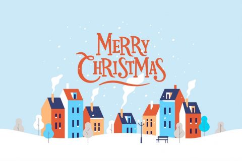 تصویر وکتور منظره شهر در کریسمس زمستانی