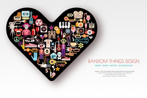 وکتور شکل قلب با طراحی اشیاء تصادفی