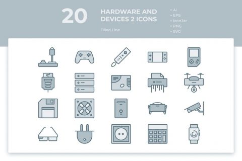 20 آیکون سخت افزار و دستگاه ورژن 2 (Filled Line)