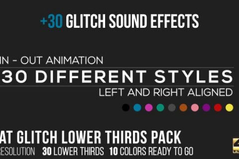 Flat Glitch Lower Thirds + 30 Glitch Sound Effects