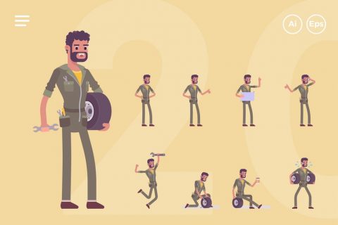 مجموعه کاراکترهای مکانیک مرد، مهندس (20 نمونه)