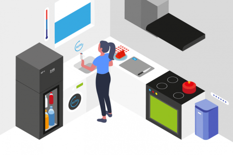 تصویر ایزومتریک آشپزخانه در خانه هوشمند