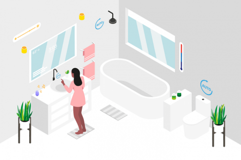 تصویر ایزومتریک اتاق نشیمن خانه هوشمند