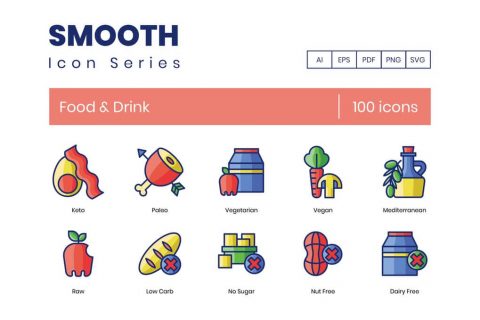100 آیکون غذا و نوشیدنی | سری Smooth