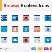 این مجموعه شامل 100 آیکون مرورگر است که بخشی از بسته نرم افزاری Full Gradient Icons Vol 2 است. آیکونهای داخل این مجموعه در قالبهای مختلفی وجود دارند: AI، EPS، SVG، PNG، PDF و Iconjar.