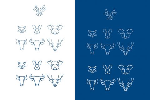 استوار. هر آیکون با استفاده از شبکه‌ای یکسان و با سبک خطوط و گوشه مشابه جهت دستیابی به یکپارچگی بصری، طراحی شده است.