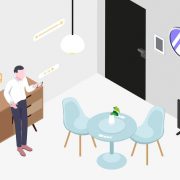 تصویر ایزومتریک اتاق نشیمن در خانه هوشمند