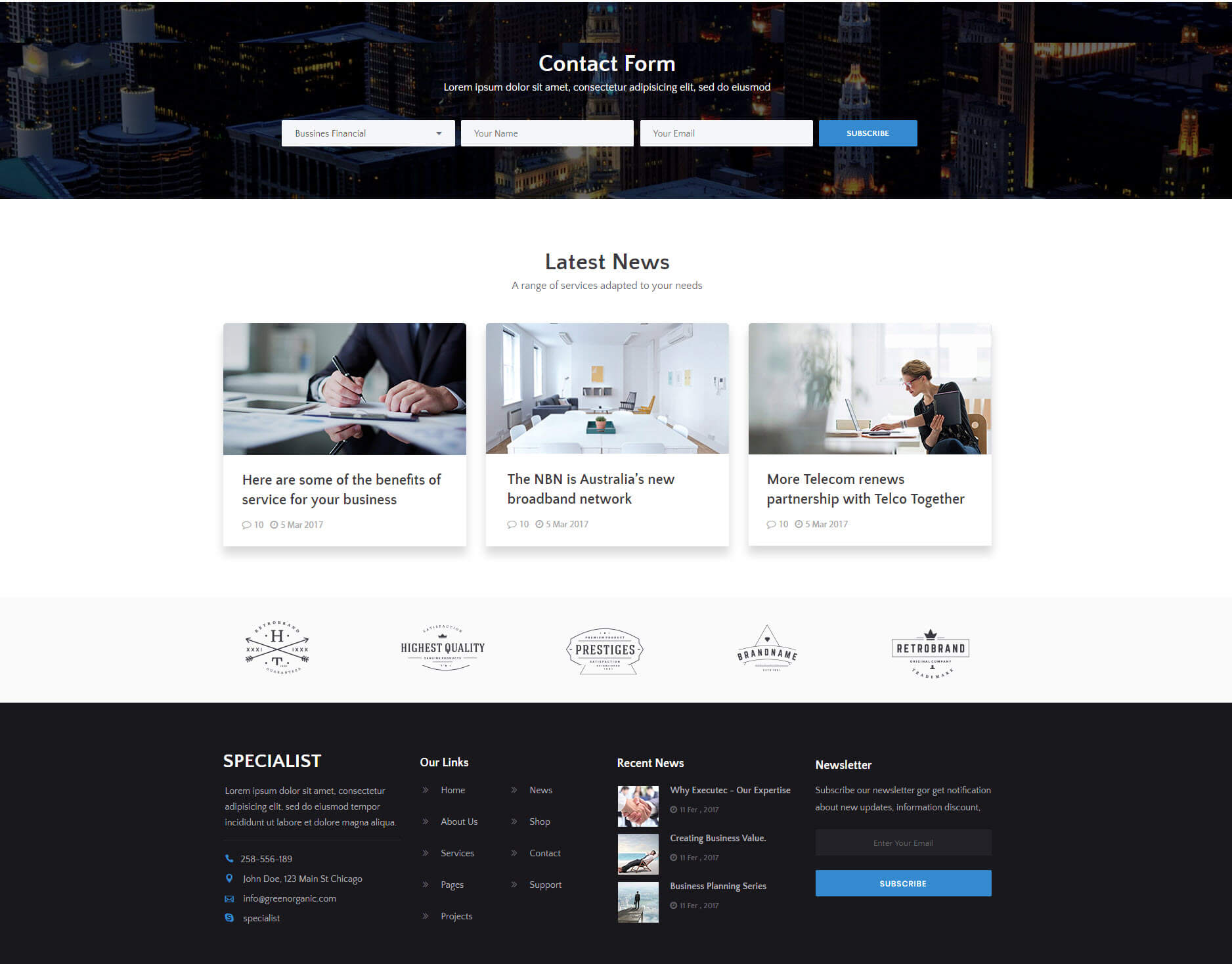 Specialist یک قالب برتر HTML با طراحی به خصوص است که برای کسب و کارهای در زمینه مالی، مشاوره، حسابداری، شرکت های کارگزاری مناسب است.