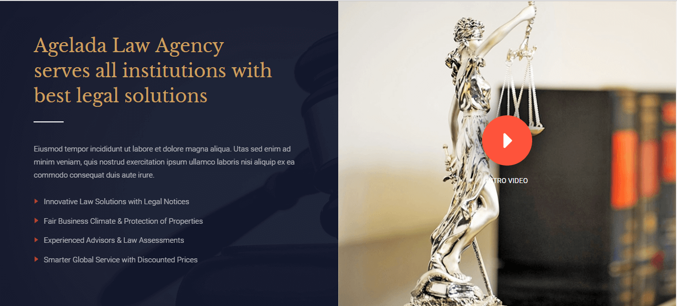 Alegada یک قالب HTML است، که برای وبسایتهای حقوقی ، وکلا یا هر نوع کسب و کار یا شرکتی که مربوط به قانون باشد، مناسب است. همچنین این قالب شامل صفحات زیر است: صفحه اصلی هوم، صفحه درباره ما، Practice Areas ، صفحه اطلاعات مربوط به تخصص و صفحات وبلاگ ، صفحات انجمن