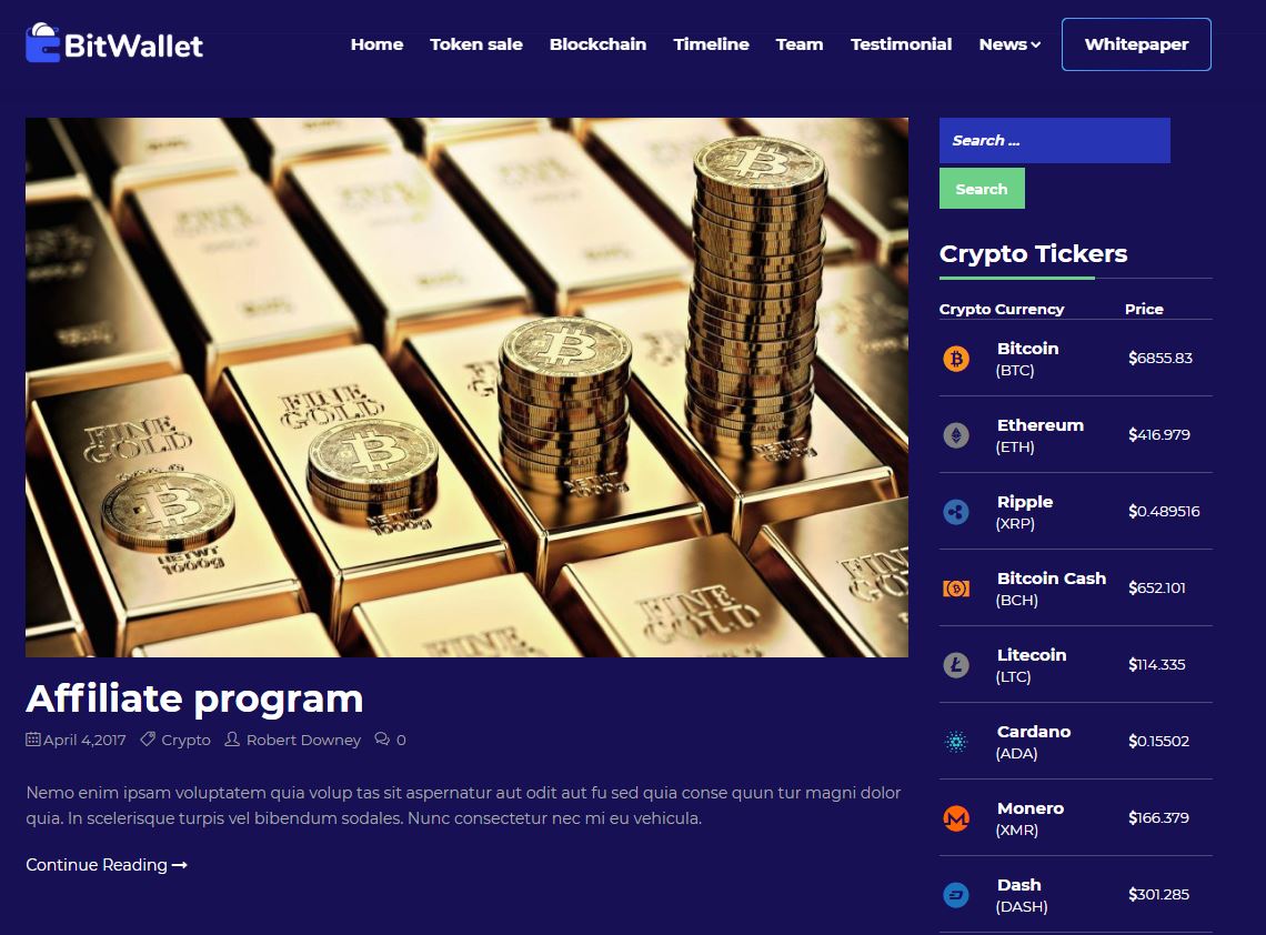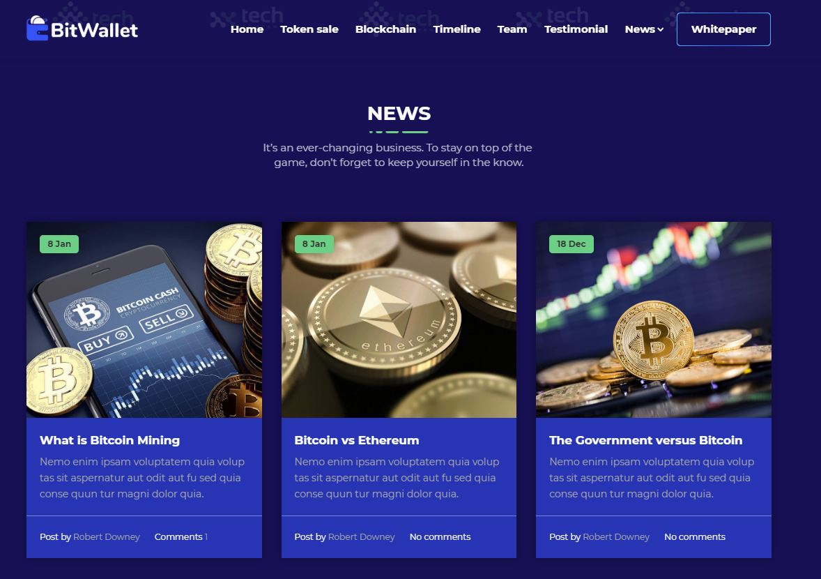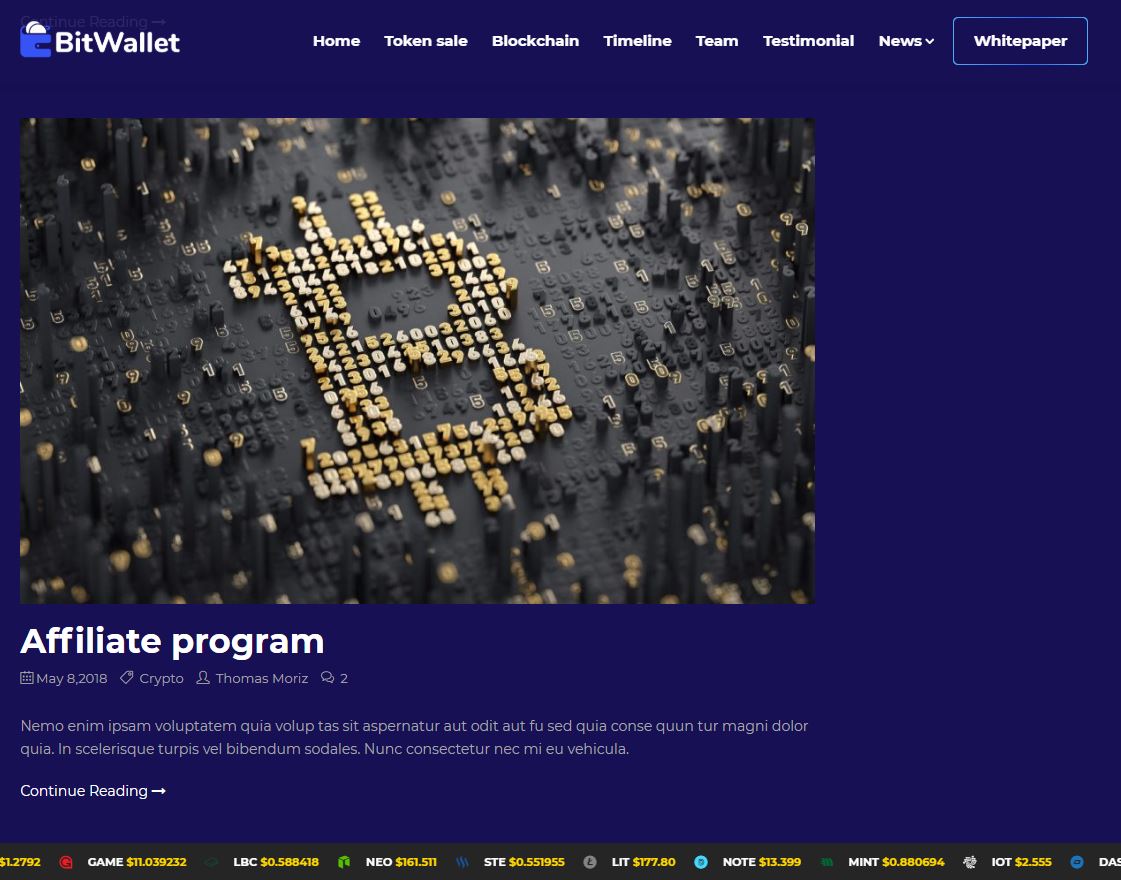 قالب HTML لندینگ پیج رمز ارز BitWallet