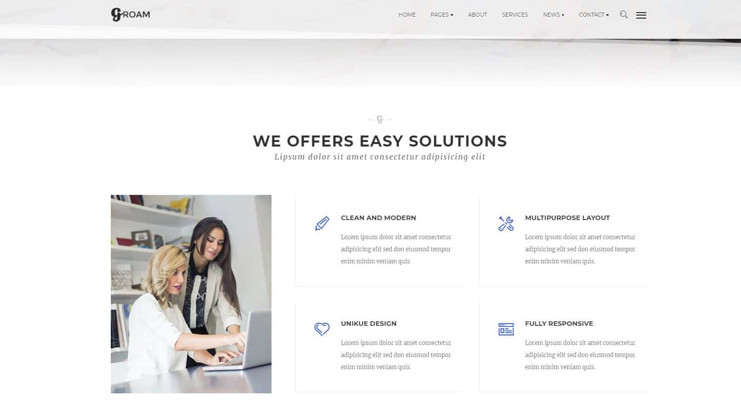GROAM یک قالب HTML خلاق و چند منظوره است. که مناسب هر وب سایت شرکتی یا تجاری است.