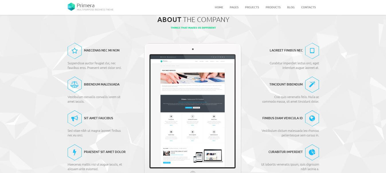 Primera یک قالب ریسپانسیو HTML5 / CSS3 ساده ، زیبا و حرفهای است. این قالب برای شرکتها ، تجارت ، وبلاگ و نمونه کارها و موارد دیگر مناسب است. در مدت چند دقیقه وب سایت یا وبلاگ خود را ایجاد کنید!