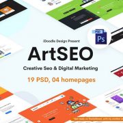 قالب PSD دیجیتال مارکتینگ و ARTSEO – SEO یک قالب خلاقانه با طراحی بی‌نقص و منحصر به‌فرد است که از آخرین مواد طراحی مدرن برای کسب‌و‌کار، آژانس دیجیتال، بازاریابی، شرکت بازاریابی، بازاریابی آنلاین و … استفاده می‌کند. طراحی‌های خلاقانه و زیبا با سبکی شیک و مدرن و بسیار آسان برای شخصی سازی. ARTSEO یک قالب حرفه‌ای و با تعداد زیادی از آپشن‌ها و پیکربندی‌ها است که به راحتی قابل استفاده می باشد.