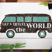 لوگوی کمپینگ به سبک رترو / آرم سفر با وسیله نقلیه تفریحی قدیمی