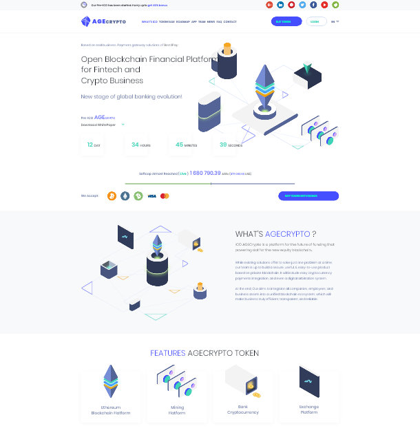 AGECRYPTO یک صفحه فرود (لندینگ پیج) مدرن و زیبا است که برای موسسات ICO و وب سایت سرمایه‌گذاری ارز دیجیتالی ساخته شده است. قالب صفحه فرود AGECrypto شامل تمام مزایای مورد نیاز و ویژگی‌های خاص است که کاملا مناسب سازمان‌های توسعه ICO، شرکت مشاوره فناوری زنجیره بلوکی (بلاک چین) و یا هر نوع وب‌سایت ارز دیجیتالی / بیت کوین دیجیتال است.