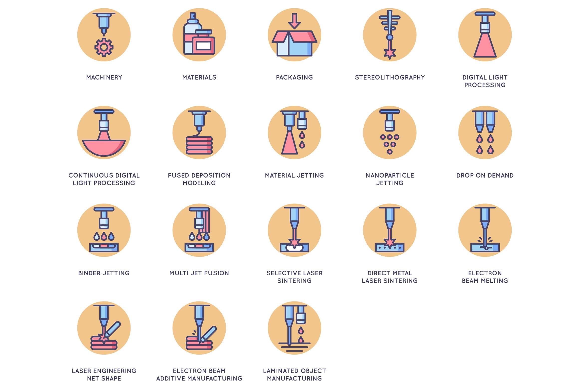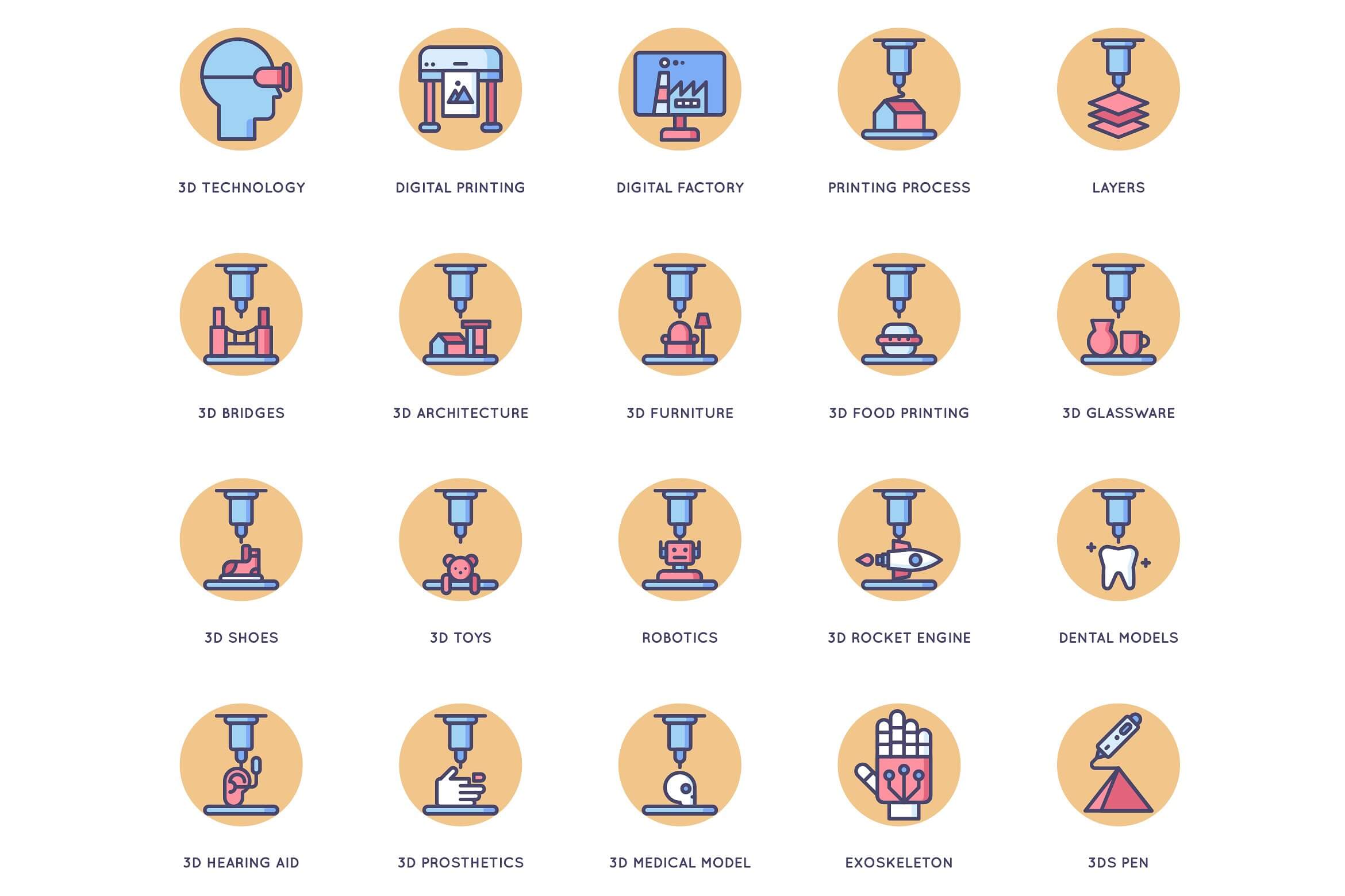 مجموعه آیکون های چاپ 3D شامل موارد زیر است: