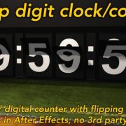 This After Effects project generates a clock or counter with a flipping numbers animation, also known as a split flap display, a flip digit clock, or solari board.