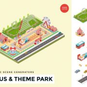 Isometric vector assets are always visually appealing. Either it is for game design, icon, map, infographics, books, and other related illustration purpose, isometric object are always fits nicely with your project goal. In this series, we crafted and present you the isometric Circus And Theme Park Vector Scene Asset. These gorgeous scene consist of over 20 isometric assets that are 100% vector. You can resized the vector AI file into any sizes without loosing its quality. We hope you like it 🙂