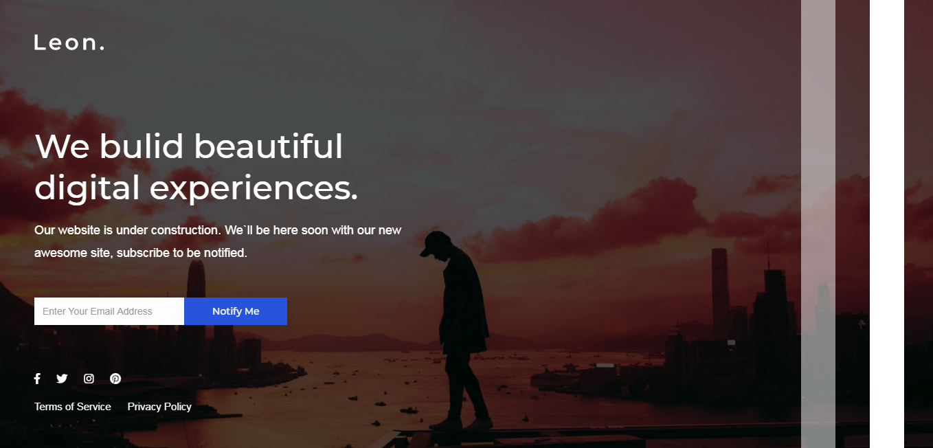 Leon is a creative, modern, minimal and fully responsive coming soon/under construction template suitable for any creative business agency.