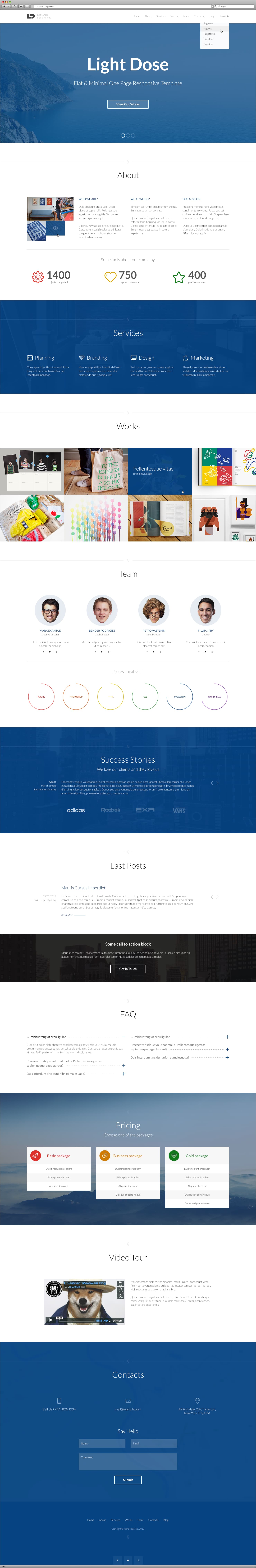 «Light Dose» — a modern, dynamic, high-quality OnePage HTML template. Following the trends in design, we tried to create, first of all, convenient and functional product that will not take a lot of time to configure and setup. And most importantly, it will fit almost everyone. Flat design, simple and expressive animation will make your content unique. One can go to talk about all the advantages and opportunities of the template, but enough to see the live preview and everything will be understandable to you.
