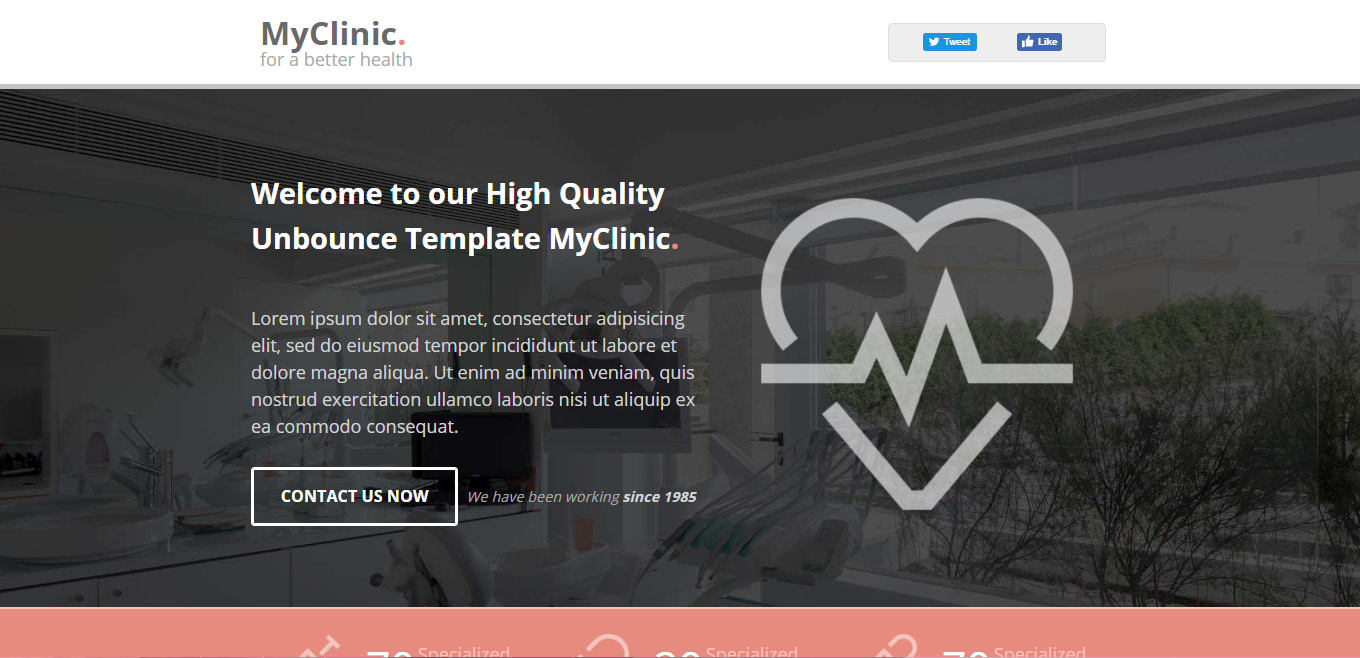 “MyClinic” is a Medical HTML Landing page template, include a lots of features, clean & modern design, you can make an awesome landing page in minutes with a Form.