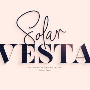 Introducing Solar Vesta font collection. This collection houses both Script & Serif fonts that compliment each other perfectly. Solar Vesta Script includes 127 Ligatures, along with a full set of Alternates/Contextuals for a completely versatile and natural Handwritten aesthetic. Solar Vesta Serif is a sharp and robust fashion-based typeface, incorporating that beautiful contrast between thick and thin. Both fonts contain multilingual support, both PUA friendly, Solar Vesta also accommodates extended language systems. Also contains free swashes and both OTF & TTF formats.